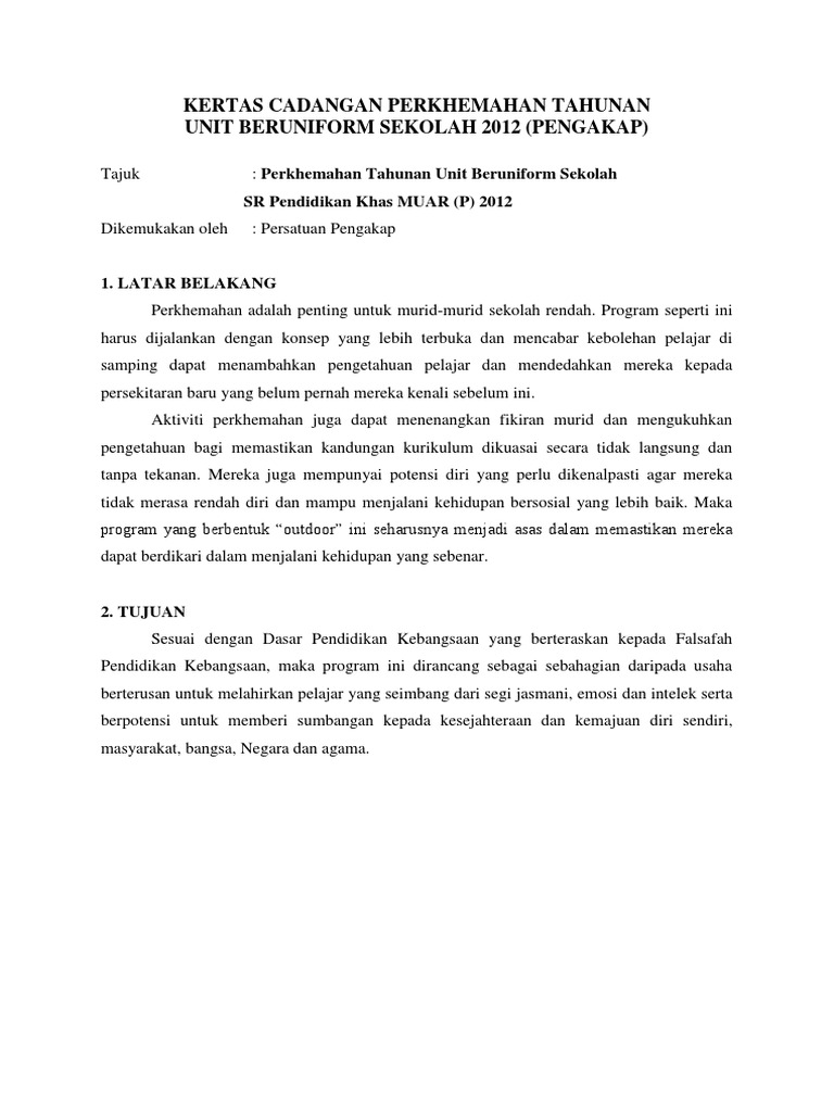 Kertas Kerja Perkhemahan Unit Beruniform Pdf